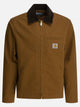 Giacca overshirt "Detroit" Carhartt WIP, modello non foderato realizzato in pesante tela Dearborn, con struttura stabile e colletto in velluto. La chiusura frontale avviene tramite zip integrale mentre polsini e orlo sono dotati di bottoni automatici regolabili. Sul petto è presente una tasca con chiusura a zip e un'etichetta quadrata applicata in tessuto come dettaglio distintivo.