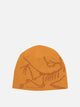 Arc'teryx "Toque" beanie. Knit model in a blend of recycled wool and polyester features lightweight construction with a form-fitting fit. A brushed polyester inner band provides additional insulation and comfort against the skin. Arc'teryx logo embroidered on the front. The construction allows the beanie to be easily folded down while maintaining low volume and practicality of use.