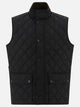 Barbour's "New Lowerdale" sleeveless, constructed of diamond-quilted fabric, features a sleeveless construction with a straight silhouette. A microfiber stand-up collar provides soft texture and an added barrier against the cold. Two patch pockets with snap fasteners and two-way zippers enhance everyday practicality. The rain collar with snap buttons completes the solid and functional construction of the garment.
