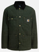 Carhartt WIP "OG Chore" coat, constructed of high-density Dearborn cotton canvas. The silhouette is wide with broad-shouldered structure and regular volume on the body. The matelassé inner lining inlays the garment, while the velvet collar, front patch pockets and button closure highlight functional details. Triple-stitched reinforcements and rivets are placed at the points of greatest stress.