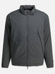 Daiwa Pier 39 "Tech 2Way" short down jacket, constructed of smooth nylon with inner filling composed of 85% down and 15% feather. The front opening features a central zipper closure. The garment construction is lightweight, with a boxy silhouette and a high collar without a hood. The construction integrates long sleeves and linear seams. This pattern features clean edges and compact volume, devoid of decorative elements.