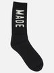 HM Human Made logo socks made of medium-gauge knit, featuring a padded construction that ensures comfort during use. The construction features a mid-length silhouette, with ankle area designed to prevent slippage. The main material includes a blend of fibers such as cotton, acrylic, polyester, nylon, and spandex that contribute to a stable and sustained fit throughout the day.
