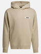 Jacquemus "Gros Grain" hoodie made of compact-textured cotton fleece. The model features a soft-cut silhouette with a linear profile, featuring an adjustable drawstring hood and ribbed cuffs and hem. The Jacquemus logo is applied with grosgrain ribbon embroidery on the chest, adding an identifying detail in the construction of the garment.