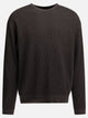Kapital's "Eco Waffle Big Crew" sweatshirt, constructed from waffle fabric with a wide weave, featuring a workmanship that gives a textured and compact texture. The second-hand finish brings distinctive visual and tactile details. It presents a wide silhouette with a straight cut and slightly dropped shoulders. The lightweight material provides comfort in wearing, while the crew neck maintains a basic, functional silhouette.