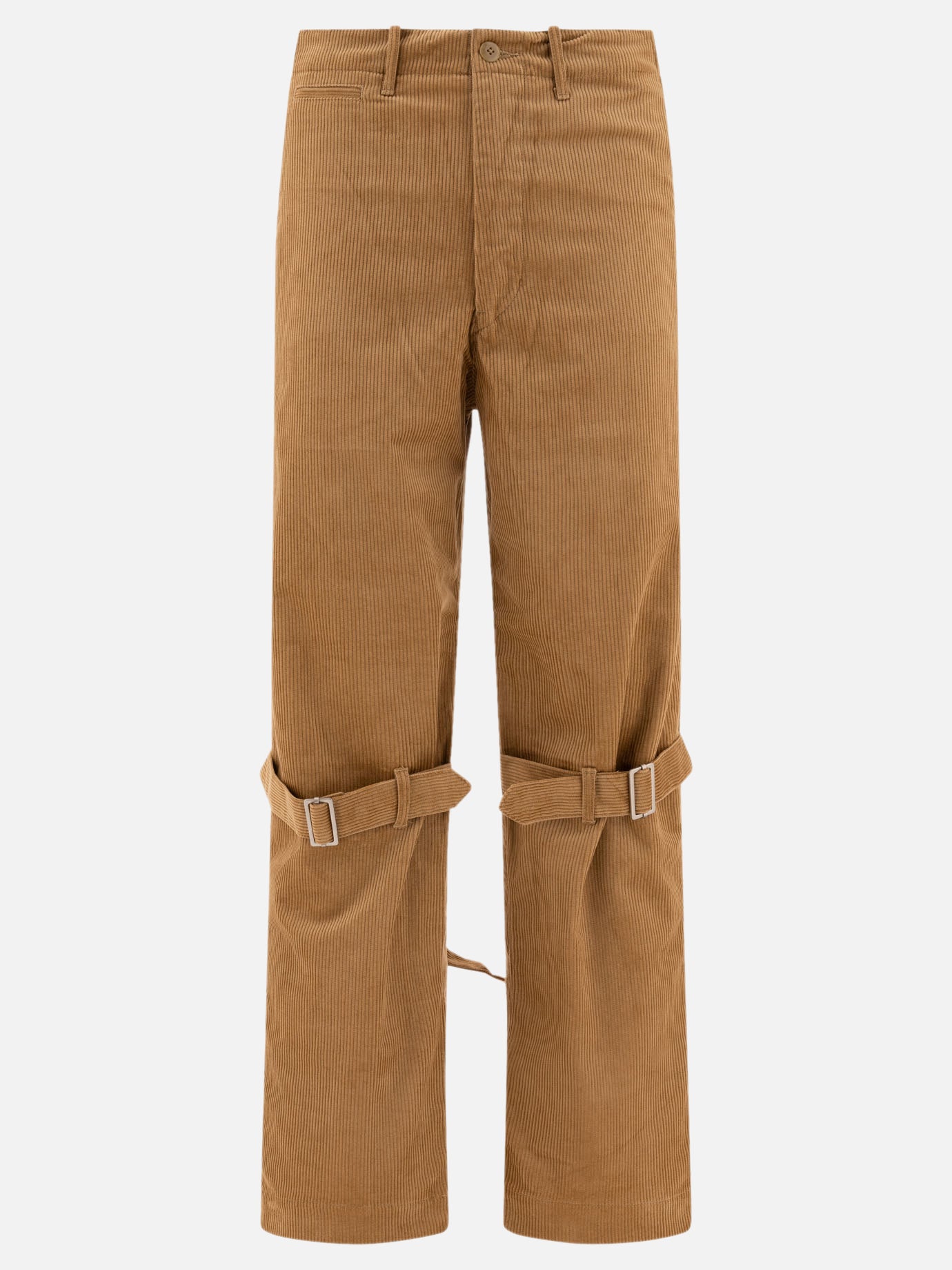 Kapital's "Harbor" bondage trousers embody the essence of a contemporary take on punk style. Made of corduroy, they are designed for the man who appreciates garments with a strong personality and distinctive design. Attention to detail is highlighted by the presence of belts fastened at the knees, which allow the length to be adjusted according to personal preferences, offering a tailored and comfortable experience. An ideal style for those who like to express their individuality through unique and sophisticated details.