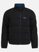 Patagonia's reversible "Better Sweater" down jacket, constructed with a linear silhouette that alternates between a knitted fleece side of 100% recycled polyester and a side of durable NetPlus® ripstop made of 100% recycled nylon obtained from discarded fishing nets. The filling, composed of 700-fill-power recycled down, is distributed in large quilted squares. Padded stand-up collar with zipper closure, functional details on cuffs and hem.