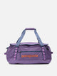 Patagonia "Black Hole 40L" travel bag, made with 100% recycled polyester body, lining and straps. It features a soft silhouette and flexible structure designed to handle small loads. The surface, finished with recycled TPU film, offers a smooth, matte finish. The rectangular design holds its shape even when fully loaded, falling within airline and railroad carry-on baggage limits.
