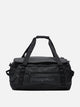 Patagonia "Black Hole 40L" travel bag, made with 100% recycled polyester body, lining and straps. It features a soft silhouette and flexible structure designed to handle small loads. The surface, finished with recycled TPU film, offers a smooth, matte finish. The rectangular design holds its shape even when fully loaded, falling within airline and railroad carry-on baggage limits.