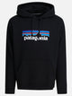 Patagonia "P-6 Logo Uprisal" sweatshirt made from a combination of cotton and polyester, both derived from recycled materials. Hooded construction, wide silhouette and ribbed details on cuffs and hem. The fabric is obtained by reusing textile scraps and recycled plastic bottles, with graphics printed on the chest. Product assembled in a Fair Trade Certified™ factory.