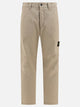 Stone Island Marina Stone Island chino pants made of stretch gabardine with a regular-waist construction and loose silhouette. Construction includes single darts at the front and a nylon webbing belt, secured with a G-buckle. Features vertical side pockets and two patch pockets at the back, one with embroidered lettering. Concealed flap, button and snap closure.