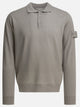 Stone Island wool polo sweater made of pure lightweight RWS-certified wool, knitted in a 14-gauge shaved knit. Long sleeve construction with linear construction, ribbed polo collar and central three-button closure. Ribbed finished edges on cuffs and bottom band, regular silhouette. Stone Island Ghost tone-on-tone badge applied on left sleeve.