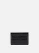 Tom Ford "Exotic Line" card case made of leather with crocodile print and glossy finish. Slim, compact structure features hard surfaces and sharp edges. Construction uses leather cuts juxtaposed with minimal stitching. The Tom Ford logo is embossed on the front. Interior trim includes parallel compartments designed for credit cards or business cards.