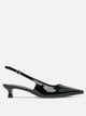 Slingback "Catrina" Aeyde features a structure defined by a tapered silhouette with a chiseled toe and kitten heel. The construction employs smooth leather uppers mounted on a slip-resistant custom sole. The adjustable back strap allows for a precise fit to the foot. The assembly favors sharp lines and a minimal profile, with materials selected to ensure containment and stability.