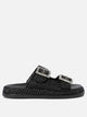 Alibi "Greta" sandals with upper constructed of double-banded raffia of vegetable origin, featuring handcrafted weave. The footbed is made of leather-covered Memory Foam to promote comfort during wear. The structure features a linear silhouette with buckle detail applied to the front strap. The synthetic sole lends stability to the footing, with a uniform thickness of 3 cm.