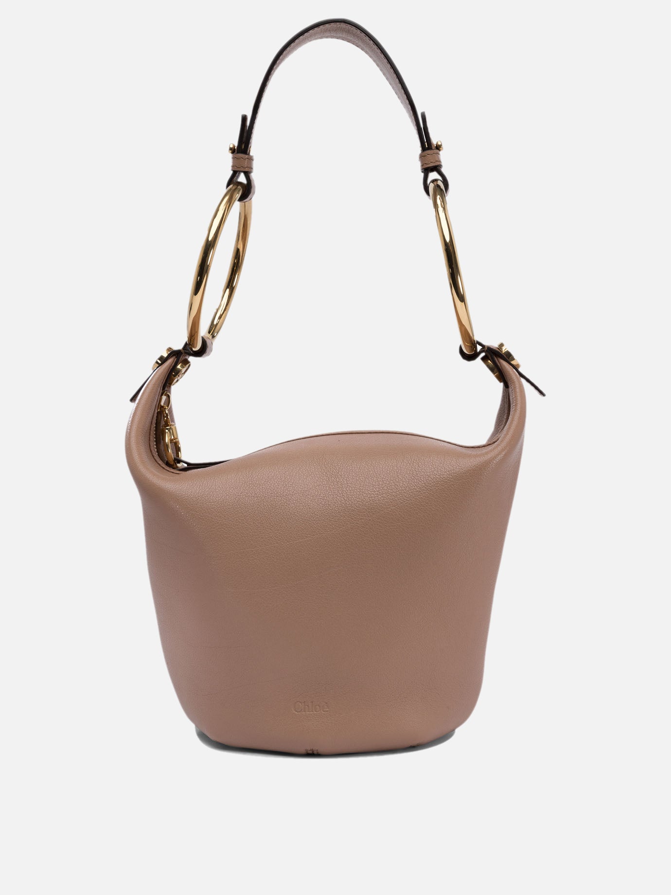 Discover the refined and timeless elegance of Chloé's "Bracelet" shoulder bag, created for the modern, sophisticated woman. Made of fine garnet buffalo leather, this bag stands out for its soft, rounded shape, enhanced by the oversized bracelet handles that expertly frame the Maison's iconic Horse medal.