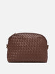 Dragon Diffusion small "Fellini" clutch bag, made of woven Italian cowhide leather. Compact structure, essential line, semi-rigid construction. Top closure with metal zipper. Interior finished with cotton drill lining, fitted with flat patch pockets. Minimalist silhouette is complemented by a detachable leather shoulder strap designed for versatile, hands-free use.
