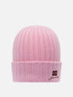 Ganni wool-blend beanie with ribbed knit construction, folded lapels and front-embroidered Ganni logo. The design features a compact, fitted silhouette made from a wool, viscose and recycled cotton blend fabric for a solid, defined texture. The knit construction provides a stable structural hold and visible, regular surface detail.