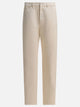 Lemaire "Twisted" jeans made of thick, compact denim, constructed with a straight silhouette and five-pocket structure. Twisted seams run through the front panels, with visible contrasting details. Belt loops are inserted at the waist, while the front closure integrates button and concealed zipper. Jacron inserts in Lemaire embossed leather are applied to the back, metal rivets reinforce the pockets.