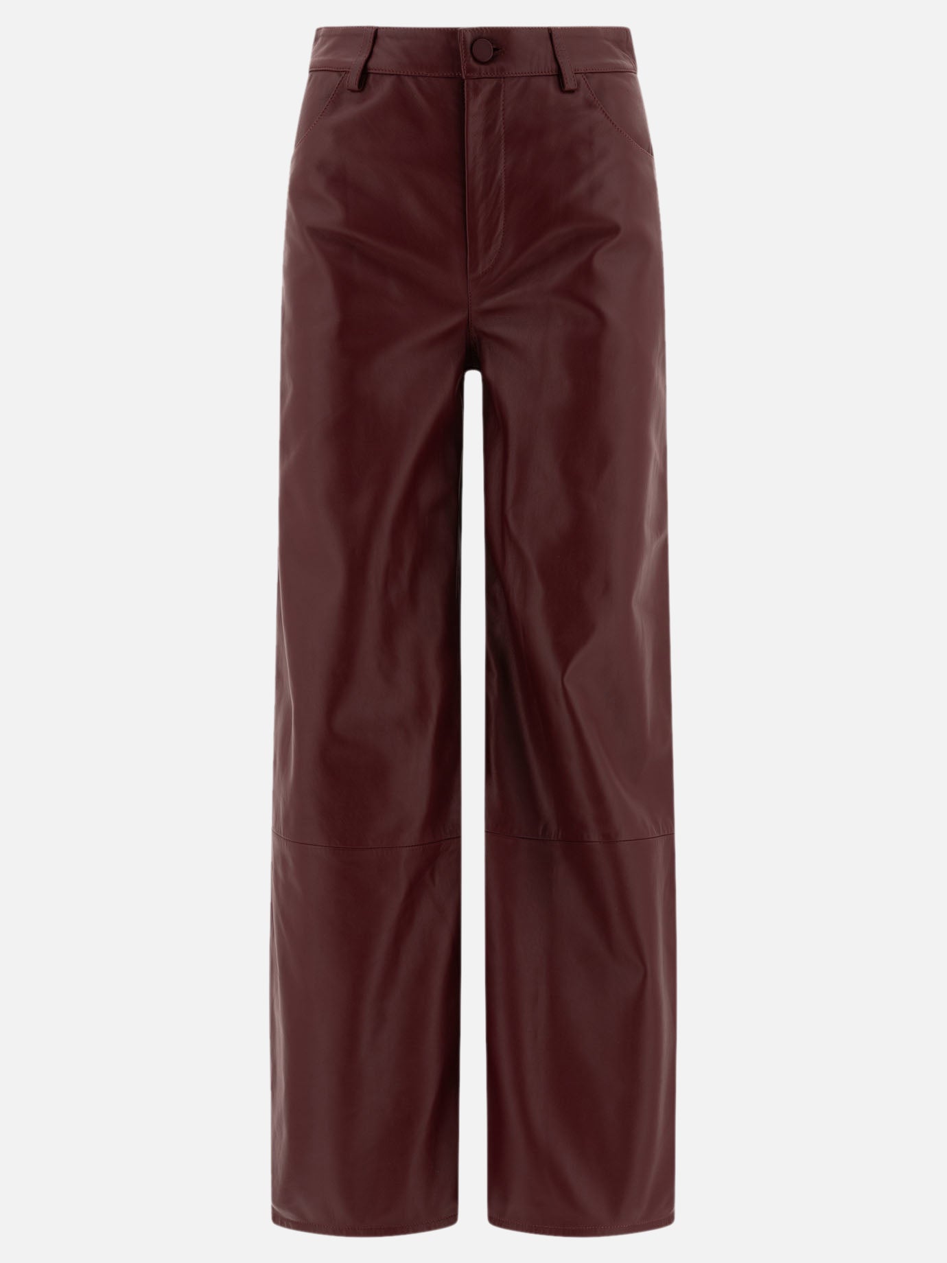 Loulou Studio's "Figari" Leather Trousers are the key piece for a sophisticated, contemporary look. Made from LWG-certified polished lambskin, these wide-leg pants offer the perfect combination of elegance and comfort, ideal for a woman seeking a distinctive and versatile style.