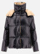 Moncler "Parana" down jacket. The model features a quilted padded construction, made entirely of shiny laqué nylon, with lining in the same material. The short jacket has regular structure with adjustable and removable hood. The front closure combines zippers and snaps. Elasticized cuffs define the sleeves, while the side pockets are zipped. Logo applied on the sleeve.