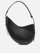 Soeur's small "Wino" shoulder bag, made of natural smooth leather, features an asymmetrical silhouette that fits on the shoulder thanks to its soft, compact construction. The structure includes an adjustable shoulder strap for variable portability, while the interior features a lambskin lining. The design incorporates a removable interior zippered clutch, secured by a snap button for added functionality and organization.