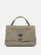 Zanellato "Postina" handbag in grained leather, constructed with craftsmanship and soft structure. The model features a rounded silhouette and essential lines. Adjustable leather shoulder strap that allows both hand and shoulder carry. Double flap closure without superfluous ornamental elements. Fabric-lined interior complemented by a patch pocket for everyday items.